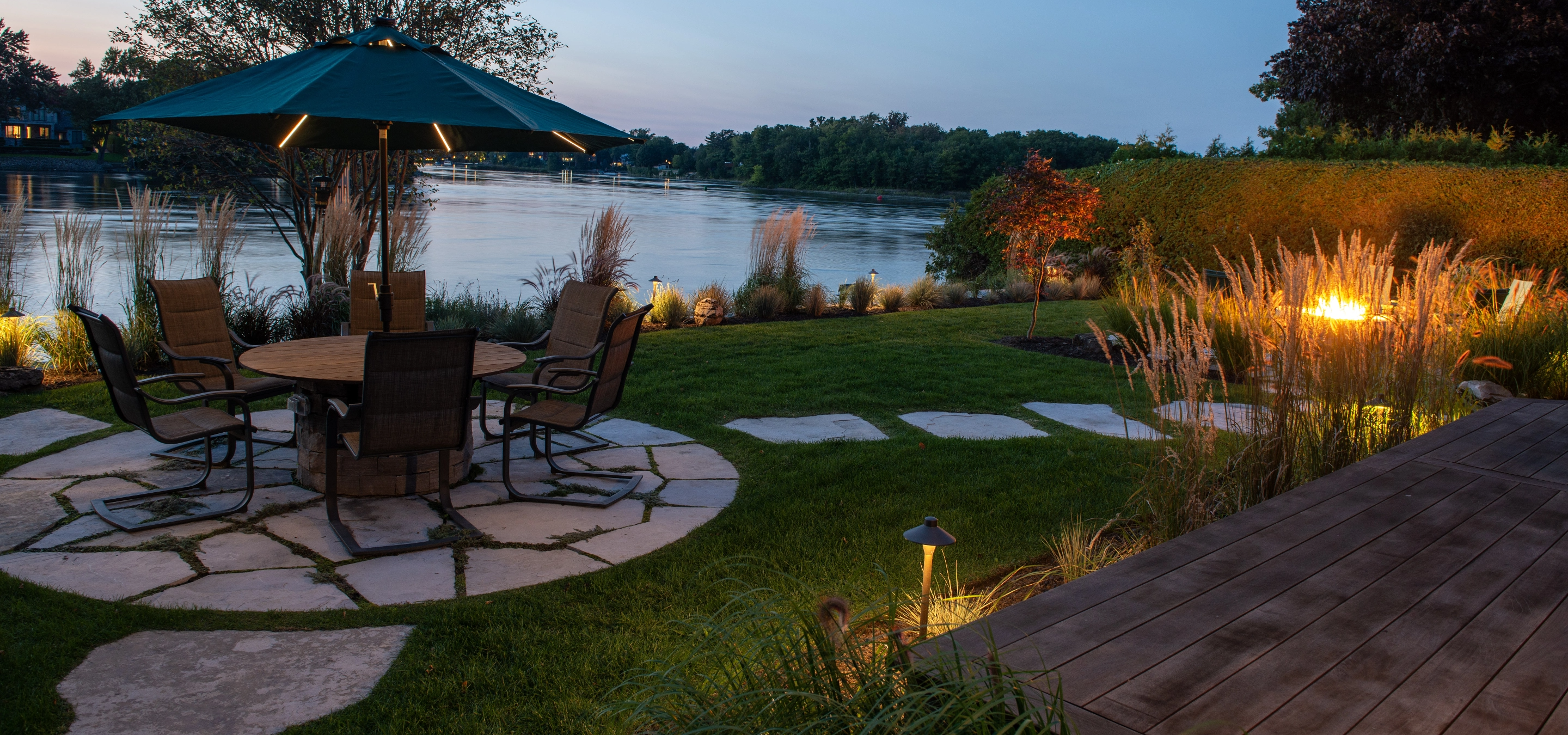 Happy homeowners relaxing, reconnecting, and enjoying the outdoor space they truly want—without the work they don’t.