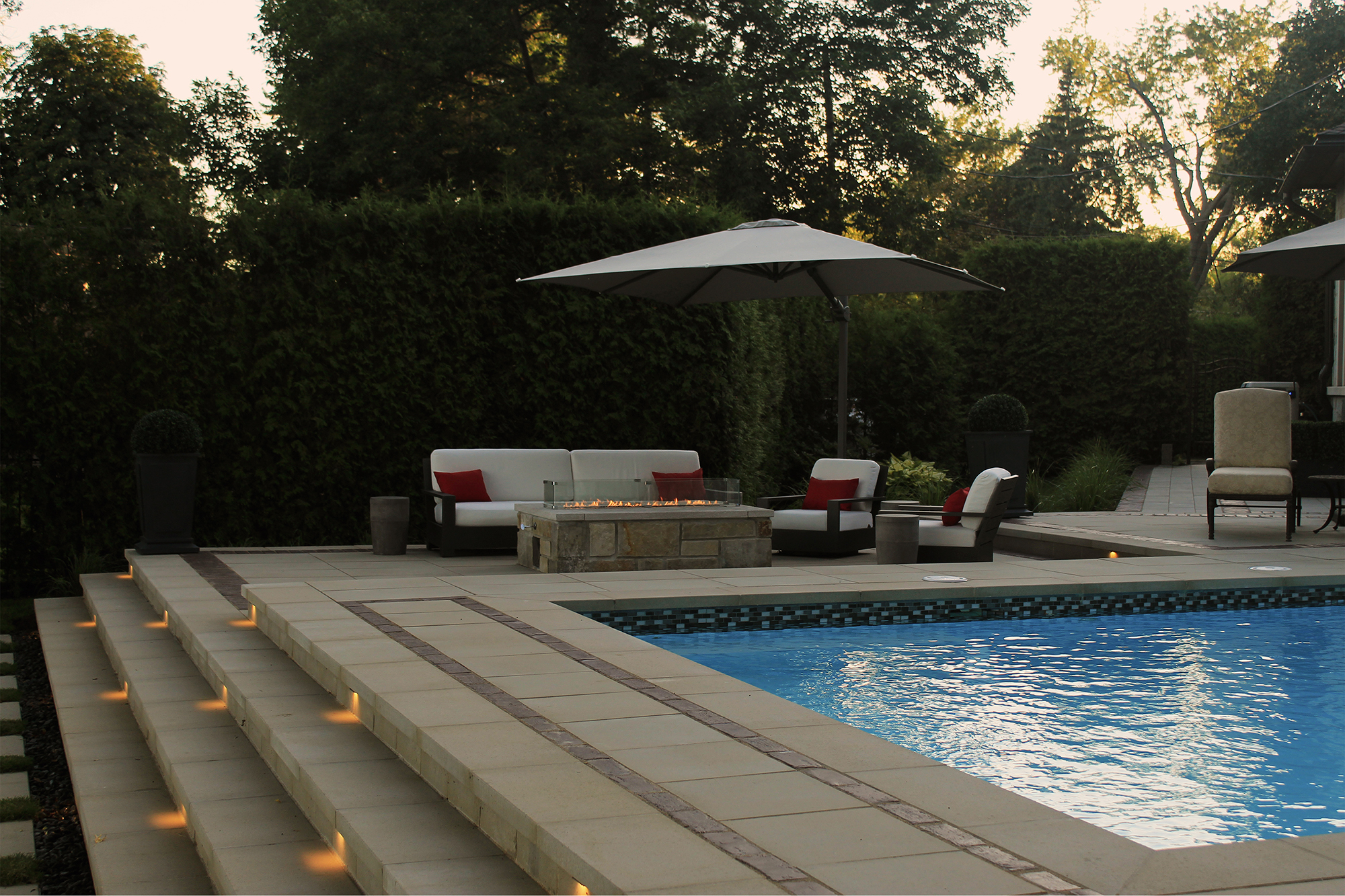 We integrated lighting which is a wonderful way to enhance the backyard look, have more hours of outdoor pleasure and overall security.