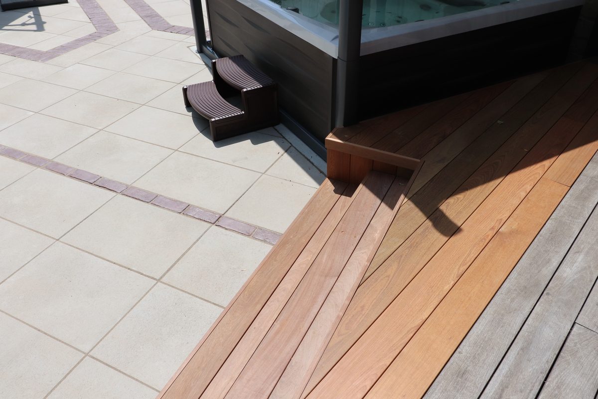 A beautiful hot tub was integrated in the Ipe wood deck for easy access.