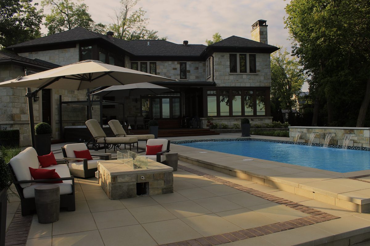 A backyard makeover to refresh the pool, have more space to entertain and enjoy the beautiful view of the Saint Lawrence River