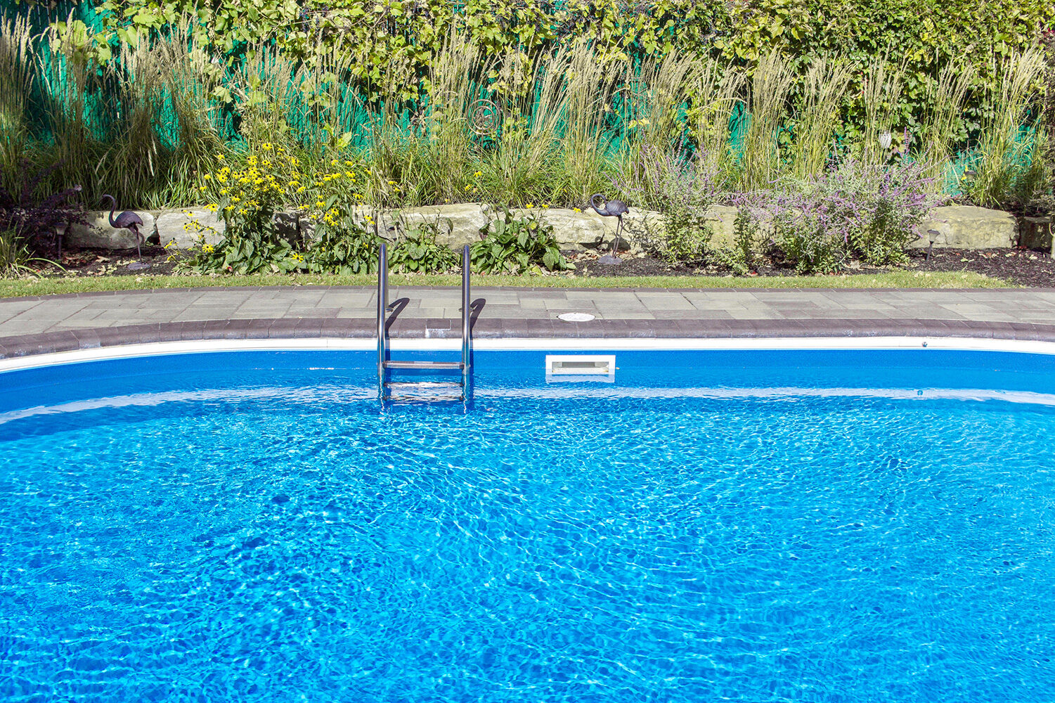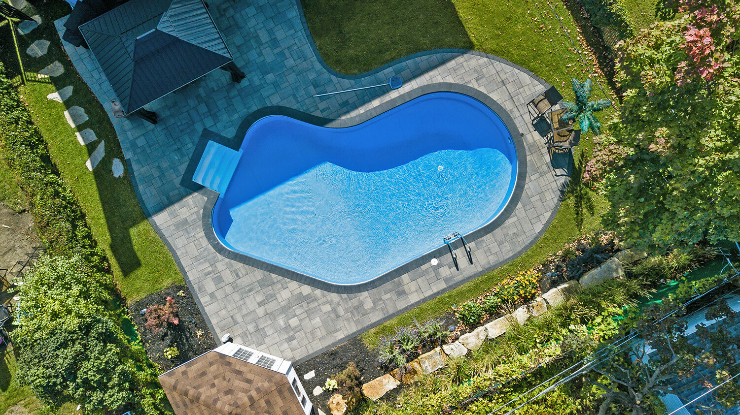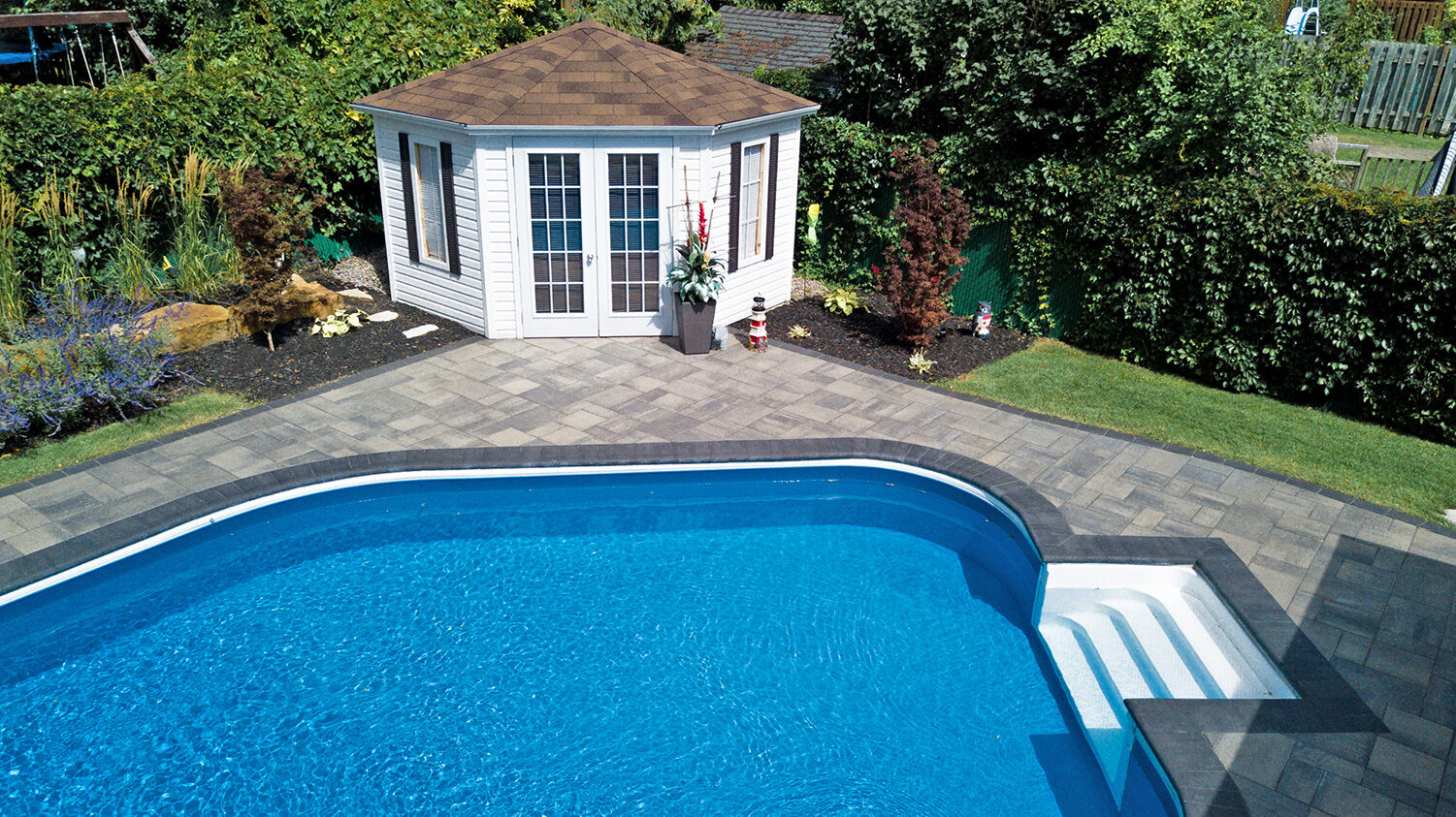 The colors for the paving materials were selected based on future plans for renovation of the home’s exterior. The existing pool required a curvilinear layout of the patio and pool deck. The front entrance was modernized with large paving stones and an angular layout. The existing concrete front porch was re-poured to the correct height to allow for the installation of stonework to match the walkway. Using the same paver colors and pattern help to tie the two spaces together. Block planting of boxwood hedges adds to the modern look.