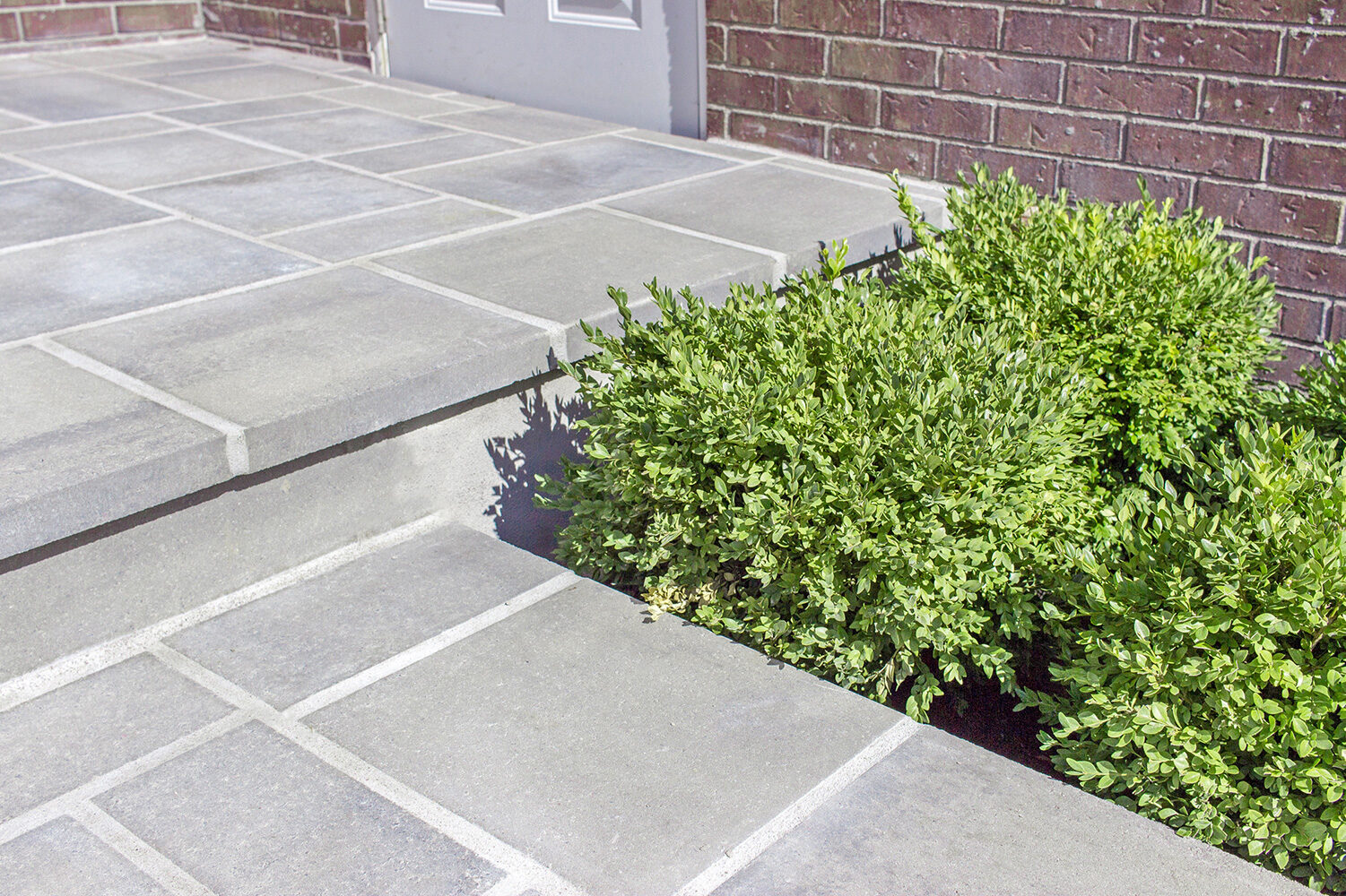 The existing concrete front porch was re-poured to the correct height to allow for the installation of stonework to match the walkway.