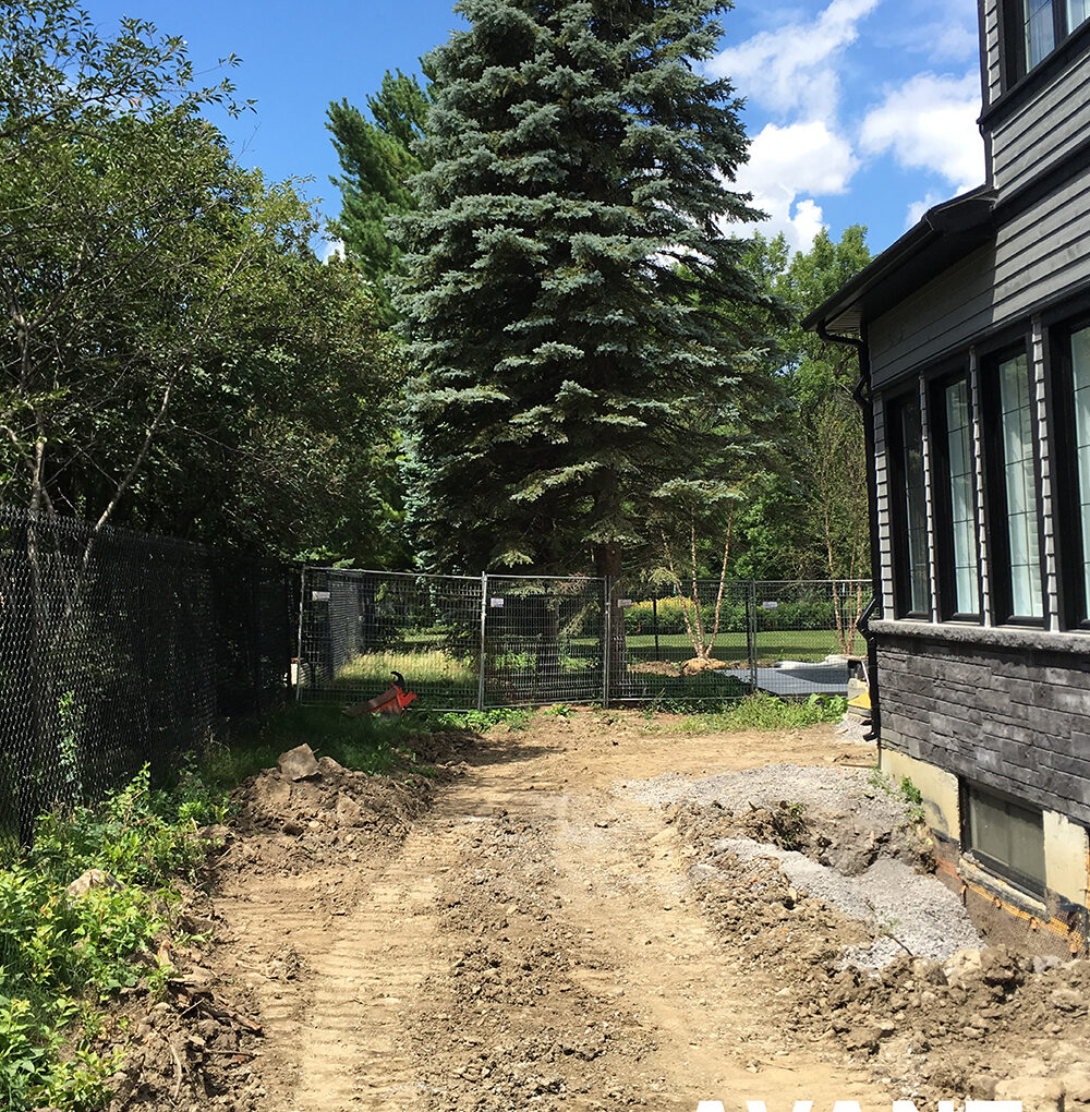 The owners were required to replant many trees to replace those which had been removed. After many revisions to the plan, we arrived at the final version that fulfilled the client’s wish list and met the many requirements of the city. Our crews completed the project in stages, first working through the property installing the many patios and walkways. The gravel bases were installed in the fall of the year that the house was built. The project was continued the following spring to ensure that the ground had settled and that all of the stonework would remain smooth and solid for years to come.