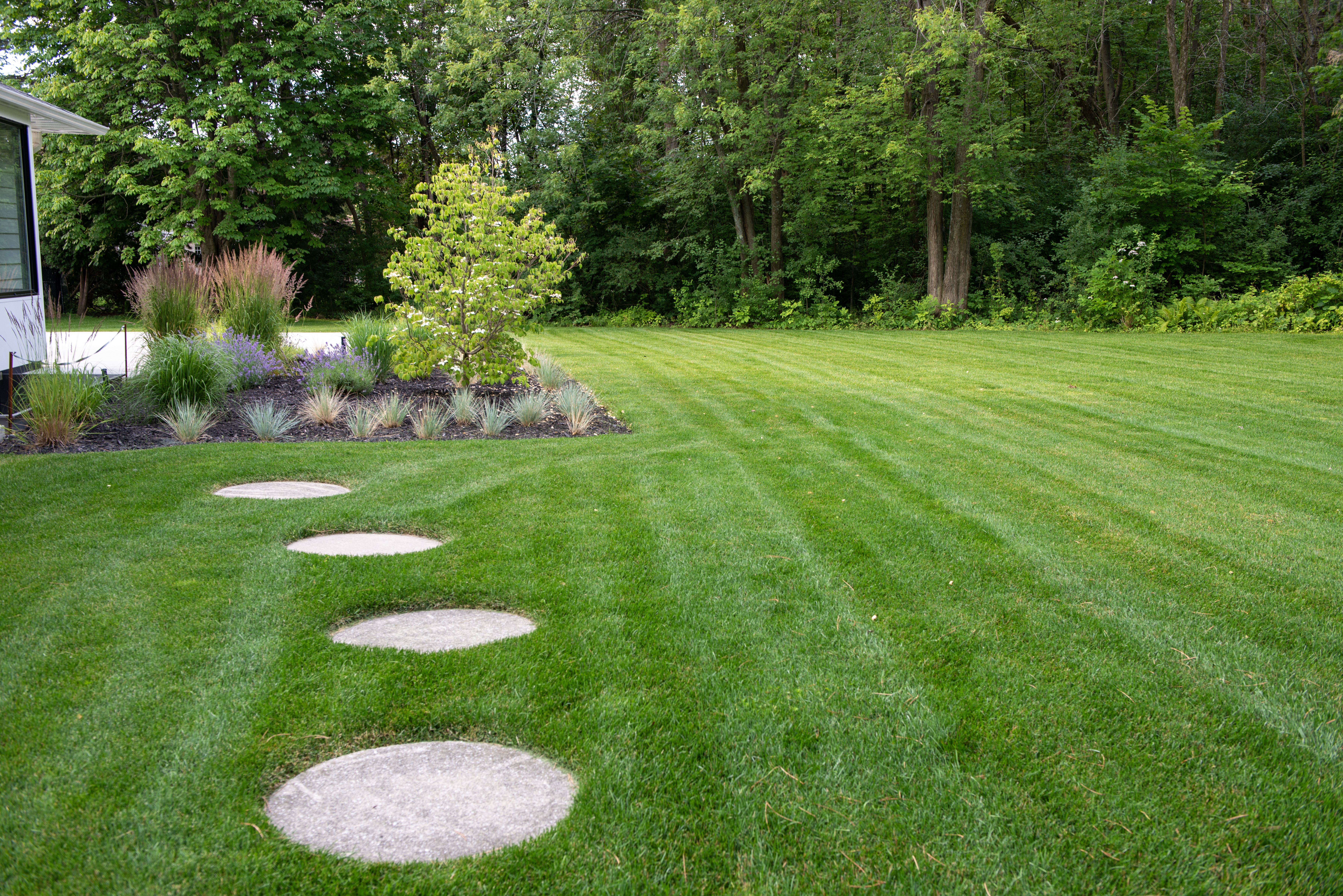 Final touches of river stones, sod, and plantings were added to complete the look. The result is a solid, gorgeous seawall with enhanced landscaped areas. Lush grass and colorful plantings surrounding their patios and walkways to create a unique everlasting peaceful backyard they can enjoy for summers to come!