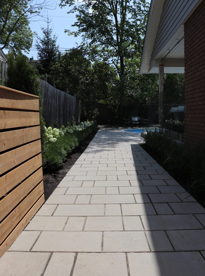 In a very young neighbourhood of Beaconsfield, these young homeowners were searching to modernize their backyard and make it fully functional for their growing, young family. DLC performed an entire backyard makeover, from the walkways, to the pool and lastly, the living space.