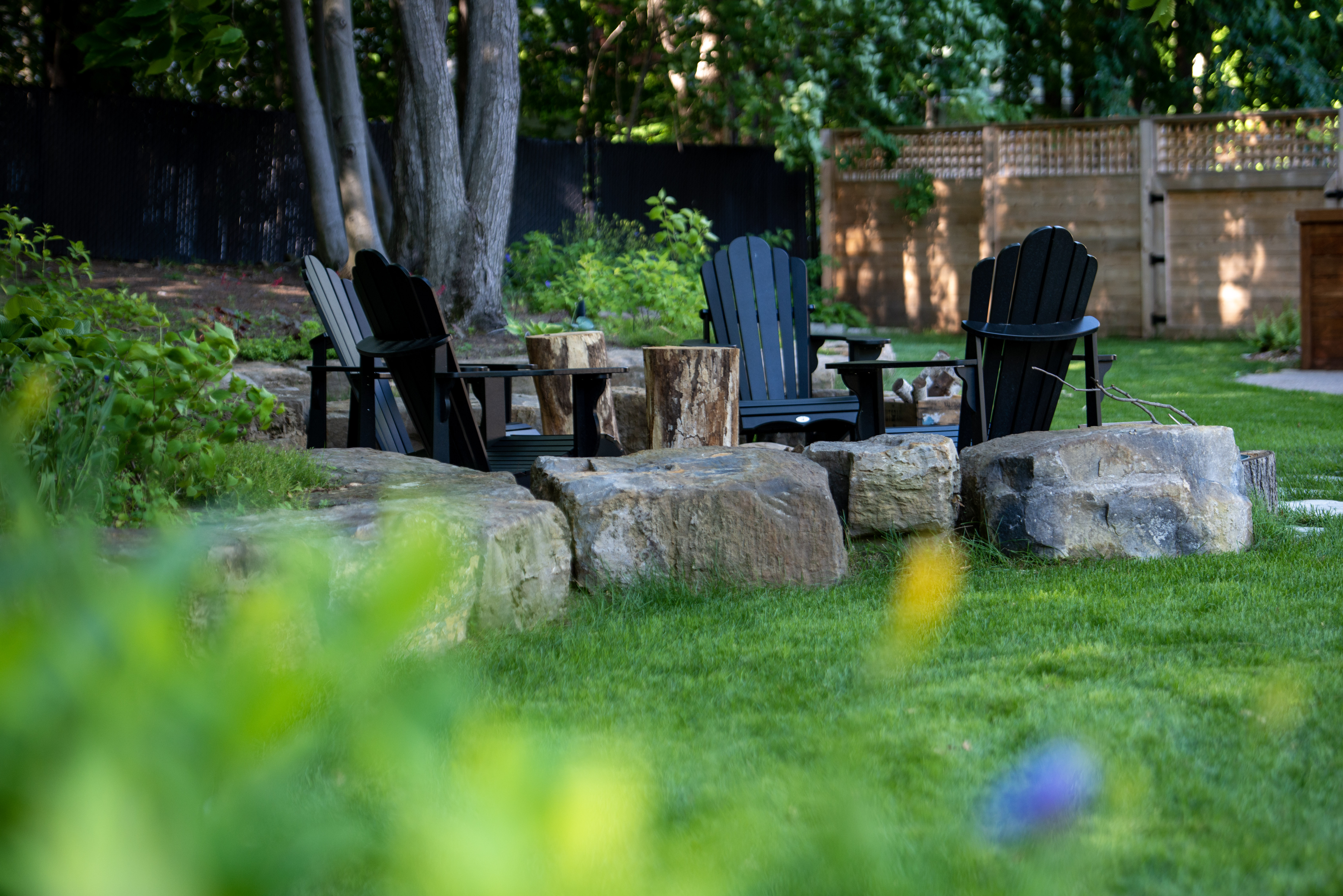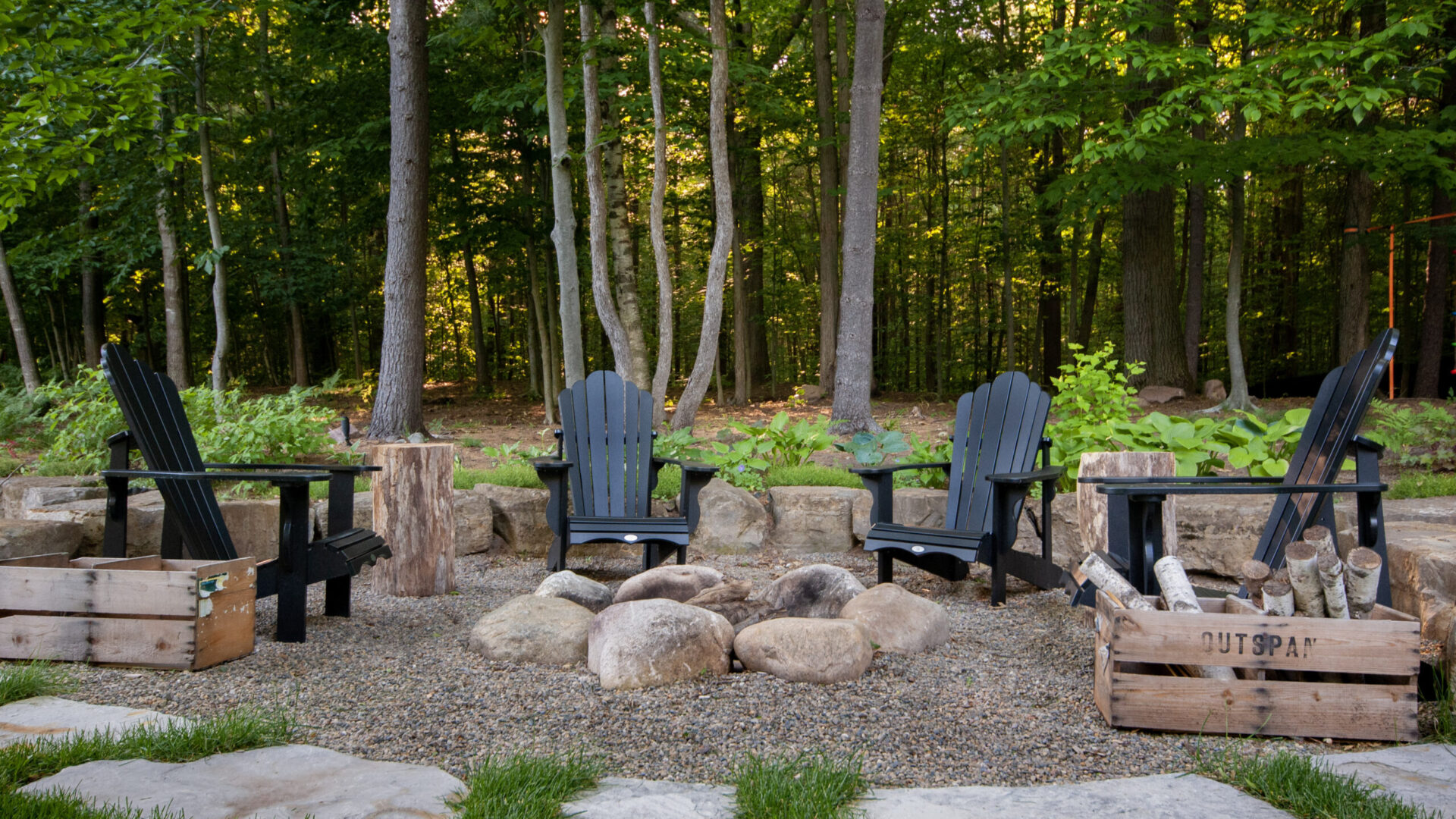 Lastly, one additional living space was created, off to the back of the property. We built a natural garden stone fire pit area, perfect for relaxing on both warm & colder summer evenings.
