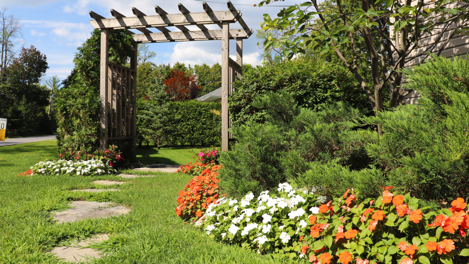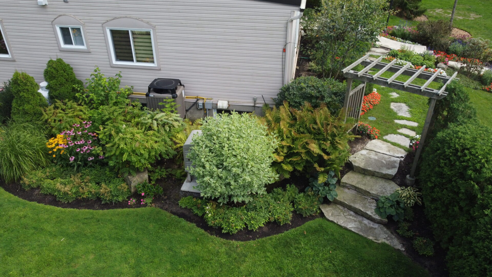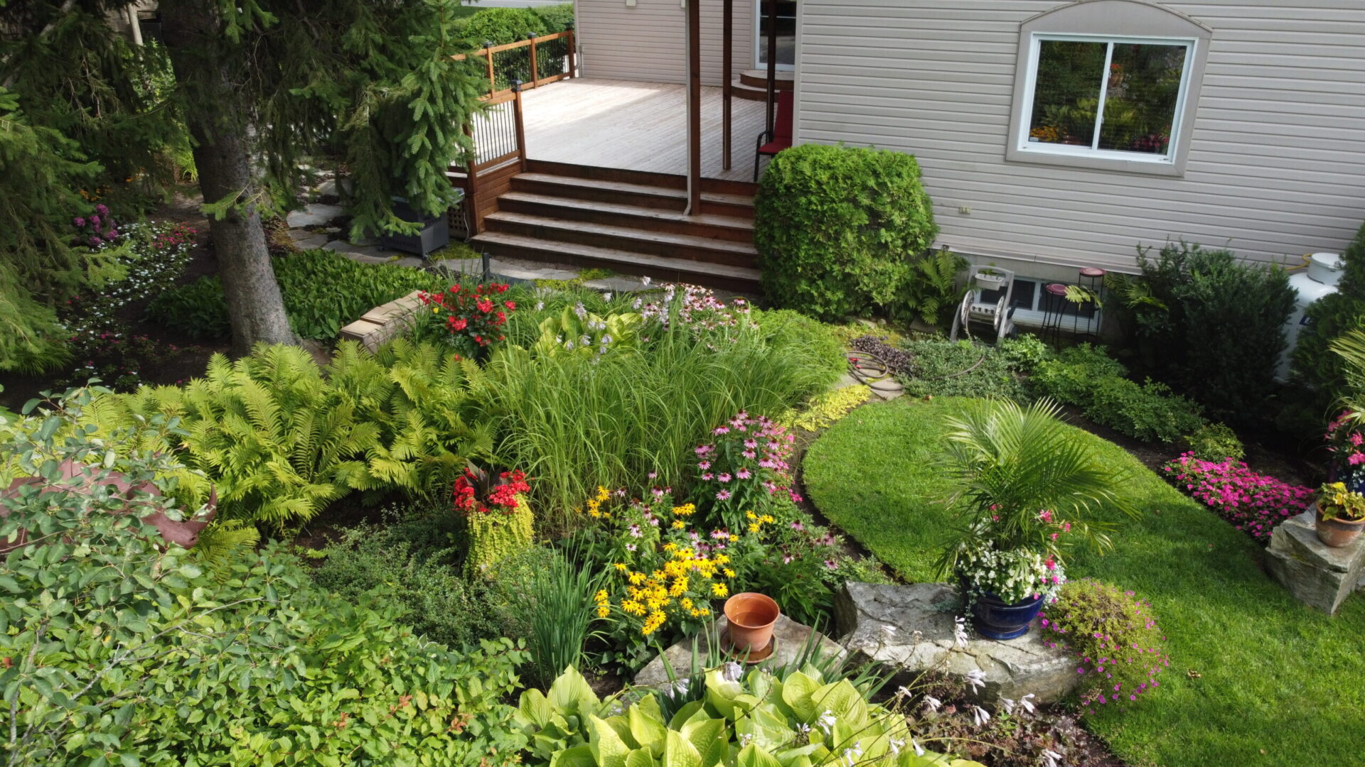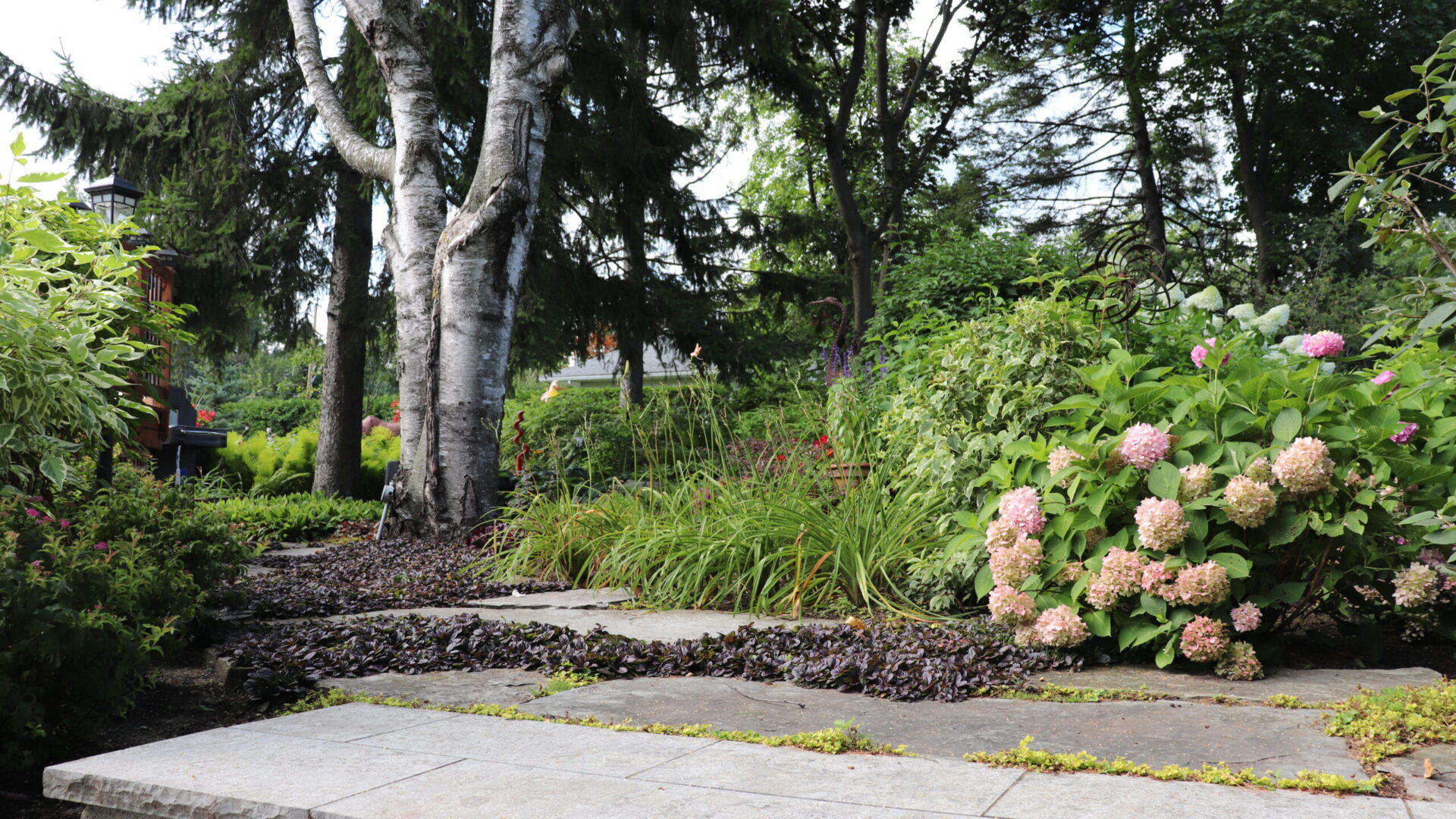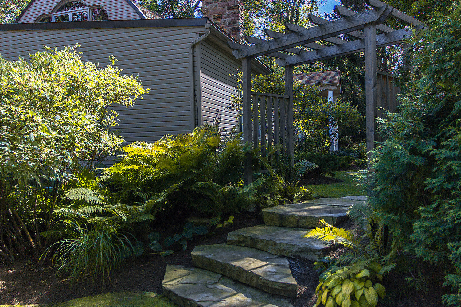 After placing hundreds of tons of soil and stone, the garden was planted with a wide range of perennials and hardy shrubs. The perennials were planted in large groups to give the garden a natural feel and work with the scale of the garden. The property is located on a corner with a moderate level of traffic. In order to create some privacy in the backyard, a cedar hedge was installed on 2 sides of the property. A wooden arbor was constructed at the top of a natural stone staircase, “framing” the entrance to the backyard and brining guests into the garden at one of the best viewpoints.