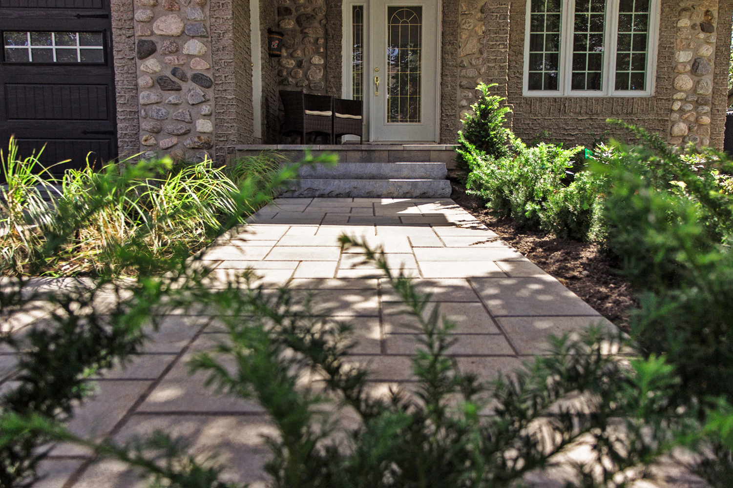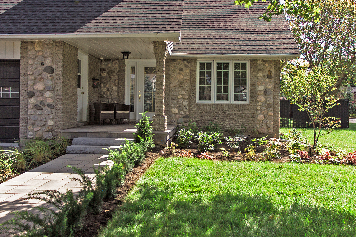 The dated front yard and driveway came to life with the addition of ornamental grass and low maintenance perennials and new sod was laid down to complete the look.
