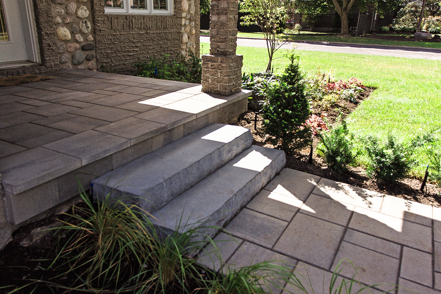 On a beautiful corner lot, tucked away off a main boulevard, this long-time lawn maintenance customers of ours reached to to see what could be done to update their front driveway and walkway. With a unique yet traditional home exterior, the owners of this home were looking for some extra curb appeal that would be contemporary enough to be in style, yet not too modern, to clash with the look of the home.
