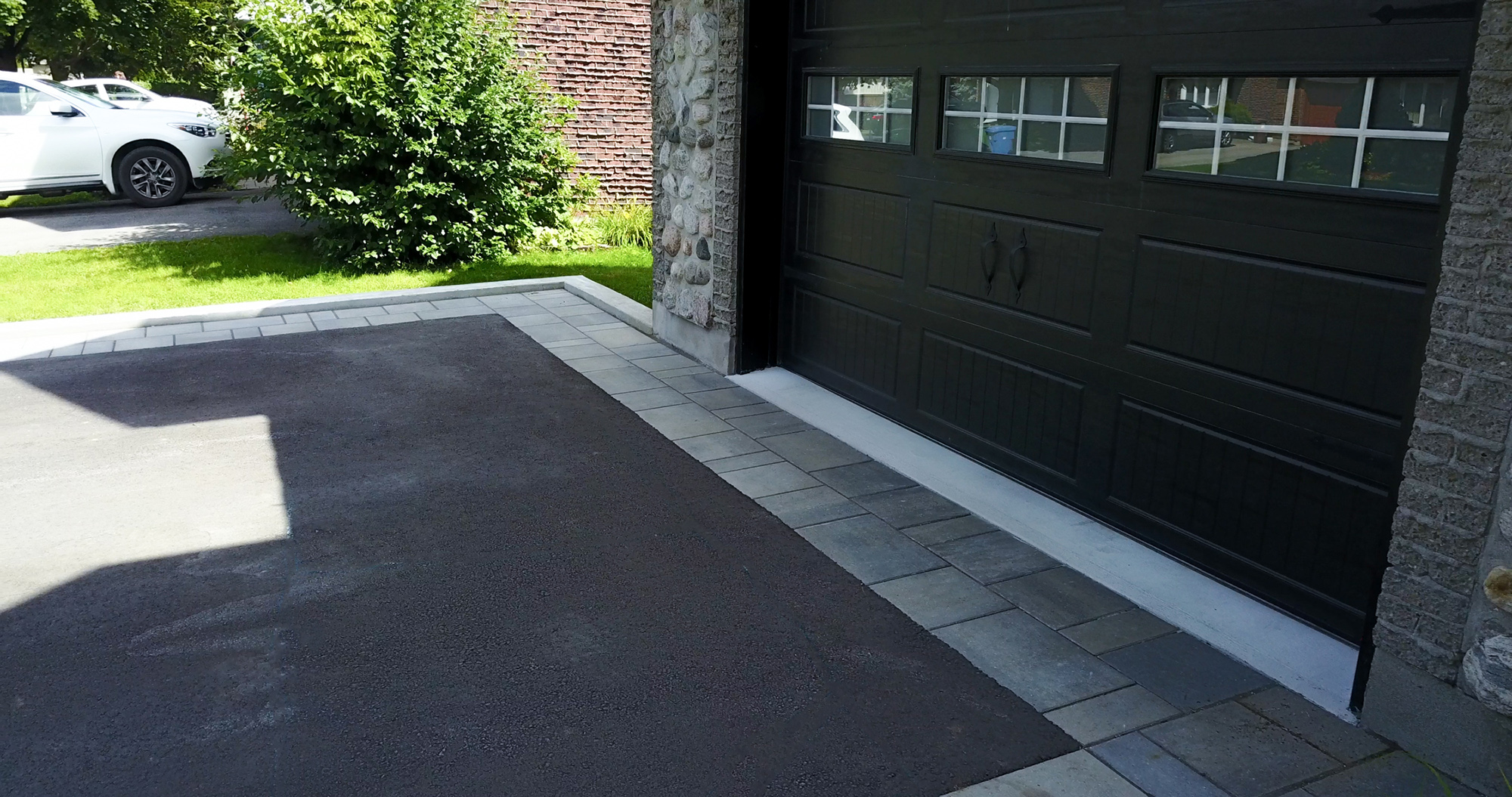 To keep within these guidelines, our team capped the existing front stairs and built a stunning walkway using Technobloc Blue which lead into the perimeter of the driveway. The driveway was then finished by asphalt to mix modern style with traditional methods.